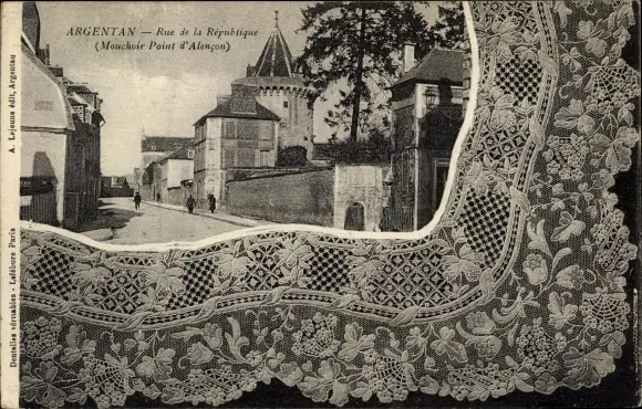 Ak Argentan Orne, Rue de la Republique, Mouchoir Point d'Alencon