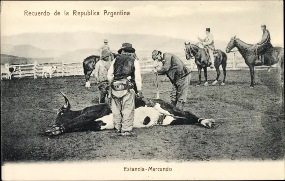 Ak Argentinien, Estancia Marcando, Rind wird gebranntmarkt