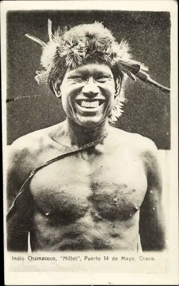 Ak Argentinien, Indio Chamacoco, Millet, Puerto 14 de Mayo, Chaco