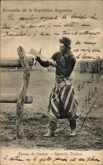 Ak Argentinien, Mann schärft sein Messer an einem Stück Leder
