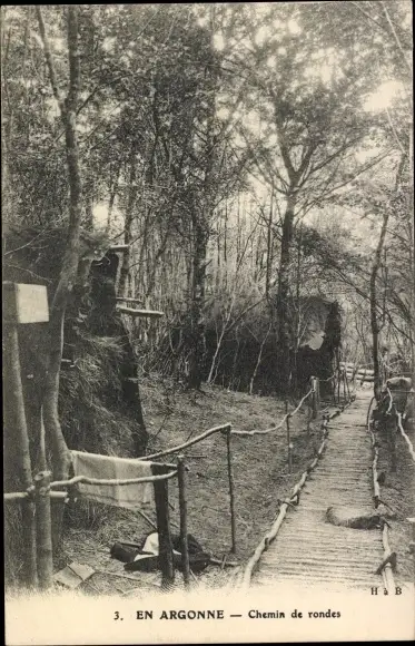 Ak Argonne Frankreich, Chemin de rondes, Weg, Wald, Hütte