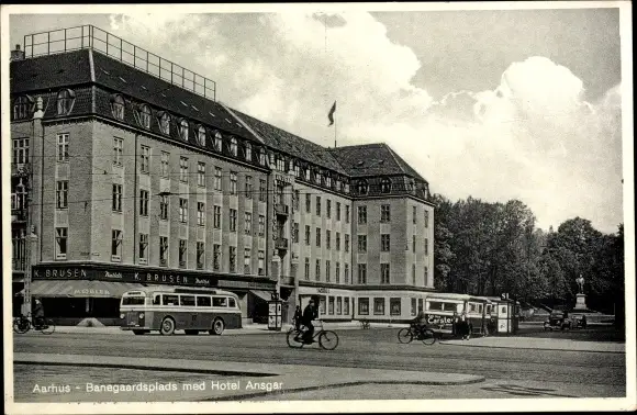 Ak Århus Aarhus Dänemark, Banegaardsplads met Hotel Ansgar