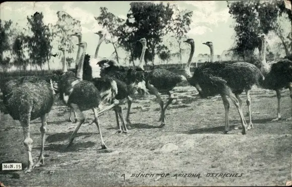 Ak Arizona USA, A Bunch of Ostriches, Strauße