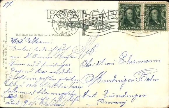 Zustand, siehe Scan, gelaufen, 1907 - ca 14 cm X 9 cm
