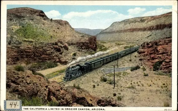 Ak Arizona USA, US Amerikanische Eisenbahn, California Limited in Crozier Canyon