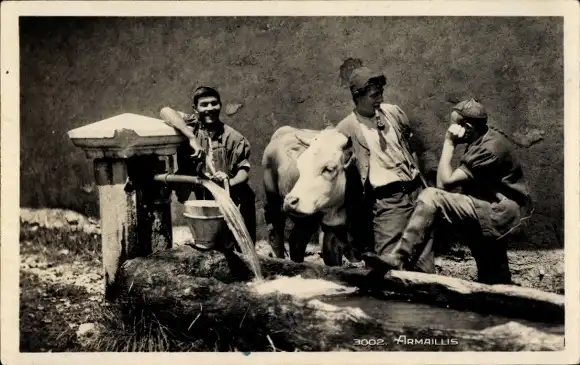 Ak Armaillis, Schweizer Tracht, Wasserbrunnen