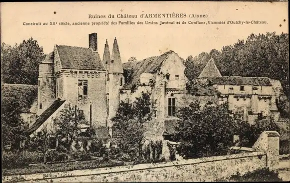 Ak Armentières Aisne, Ruines du Chateau