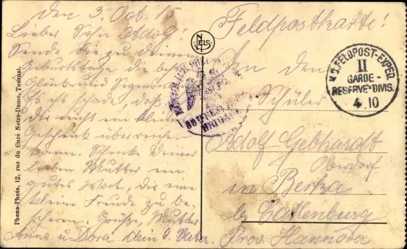 Zustand, siehe Scan, gelaufen, 1915 - ca 14 cm X 9 cm