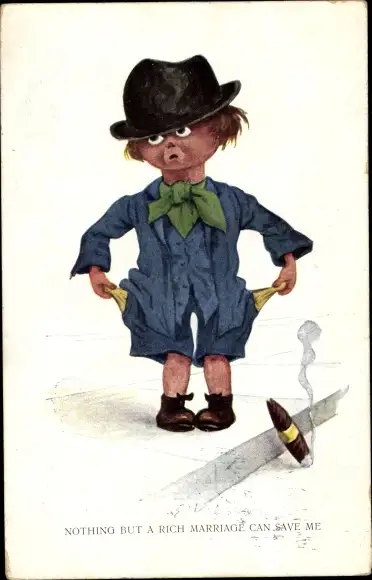 Ak Armer Junge hofft, eine reiche Frau zu finden, Zigarre