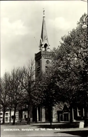 Ak Arnemuiden Zeeland, Marktplein met Ned. Herv. Kerk