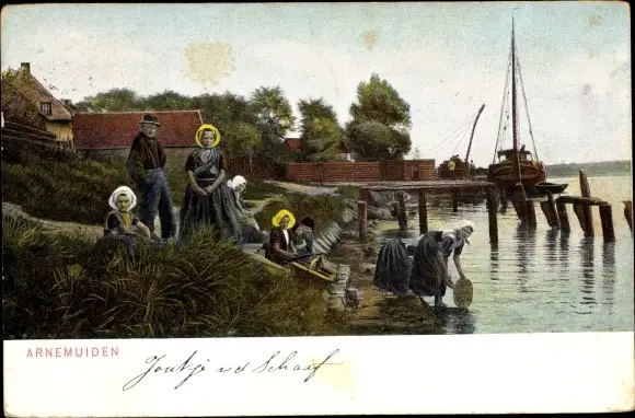 Ak Arnemuiden Zeeland, Menschen in Trachten, Boot