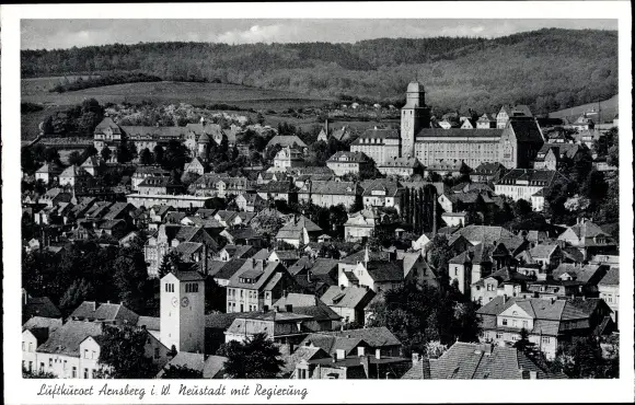 Ak Arnsberg Sauerland, Neustadt mit Regierung, Stadtpanorama