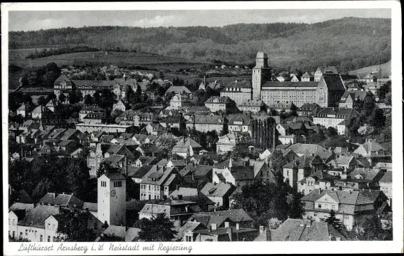 Ak Arnsberg Sauerland, Neustadt mit Regierung, Stadtpanorama