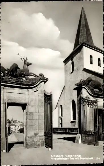Ak Arnsberg im Sauerland Westfalen, Hirschberger Tor mit Probstkirche