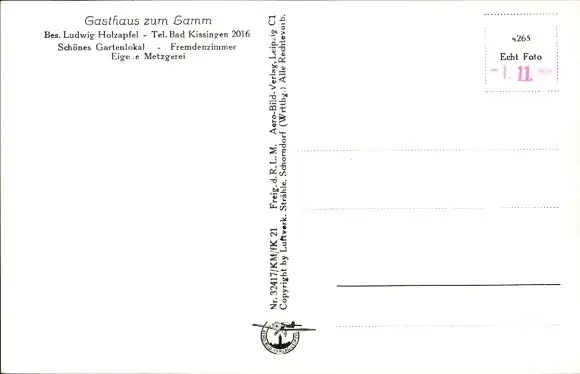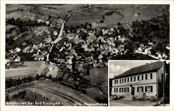 Ak Arnshausen Bad Kissingen Unterfranken Bayern, Fliegeraufnahme, Gasthaus zum Lamm