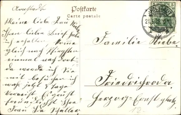 Zustand, siehe Scan, gelaufen, 1908 - ca 14 cm X 9 cm