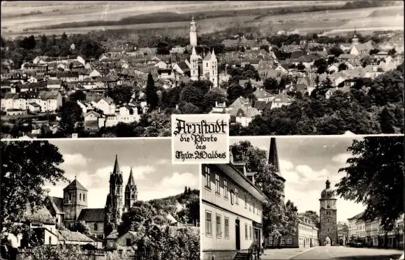 Ak Arnstadt in Thüringen, Panorama, Kirche, Tor