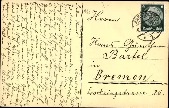 Zustand, siehe Scan, gelaufen, 1935 - ca 14 cm X 9 cm