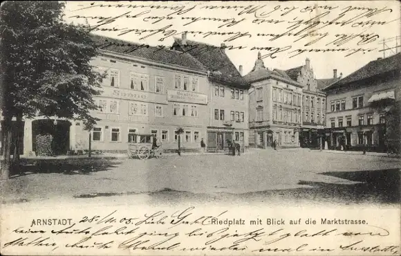 Ak Arnstadt in Thüringen, Riedplatz, Marktstraße, Zur Sonne, Geschäfte