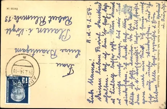 Zustand, siehe Scan, gelaufen, 1954 - ca 9 cm X 14 cm