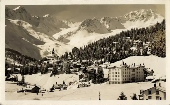 Ak Arosa Kt. Graubünden Schweiz, Totalansicht der Ortschaft, Gebirge