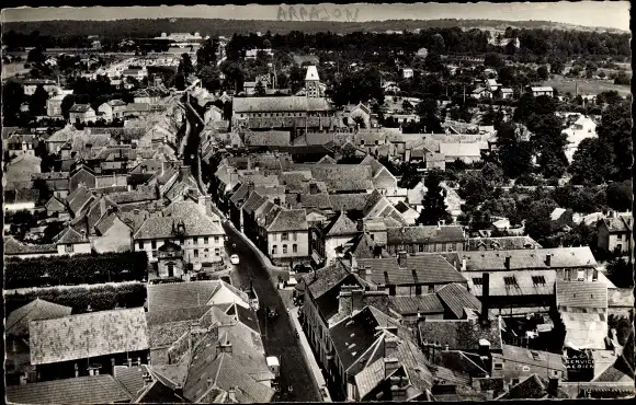 Ak Arpajon Essonne, La Grande Rue, L´Église, Vues d´Avion