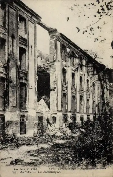 Ak Arras Pas de Calais, zerstörte Bibliothek, Ruine