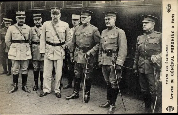 Ak Arrivee du General Pershing a Paris, Vivent les Etats-Unis