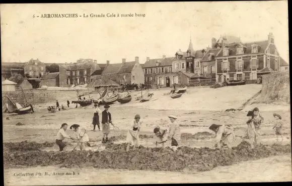 Ak Arromanches Calvados, La Grande Cale a maree basse