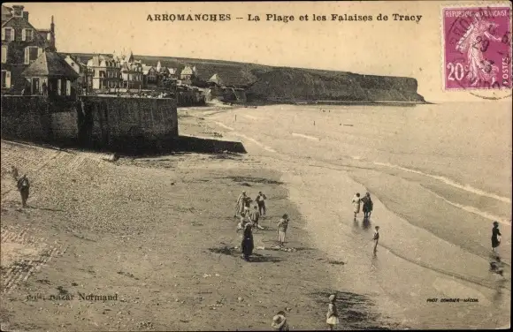 Ak Arromanches Calvados, La Plage, Les Falaises de Tracy
