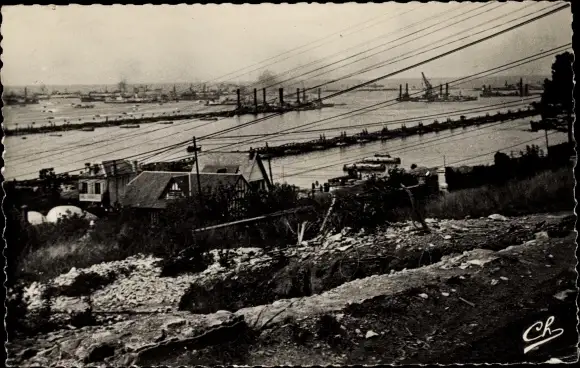 Ak Arromanches les Bains Calvados, Port Winston Churchill, Quais de Debarquement