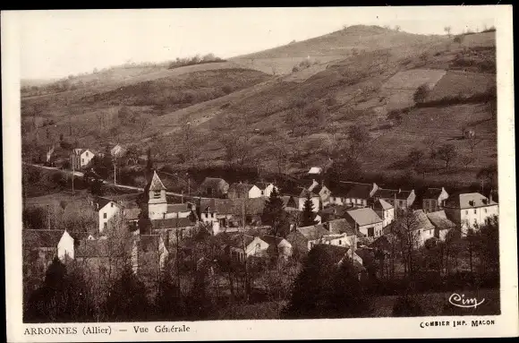 Ak Arronnes Allier, vue générale, eglise