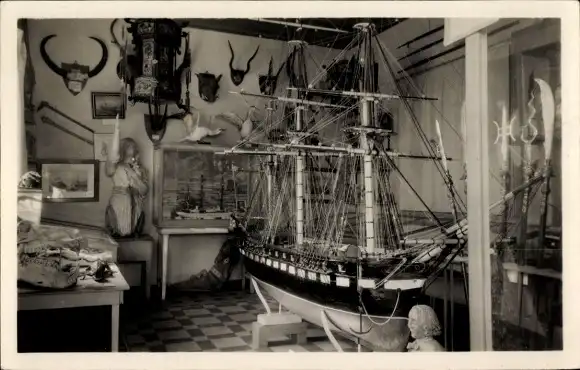 Ak Ars en Ré Île de Ré Charente Maritime, Museum, Innenansicht, Schiffsmodell