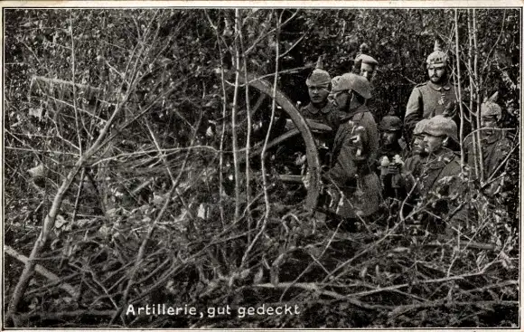 Ak Artillerie, gut gedeckt gegen Fliegersicht, in Feuerstellung