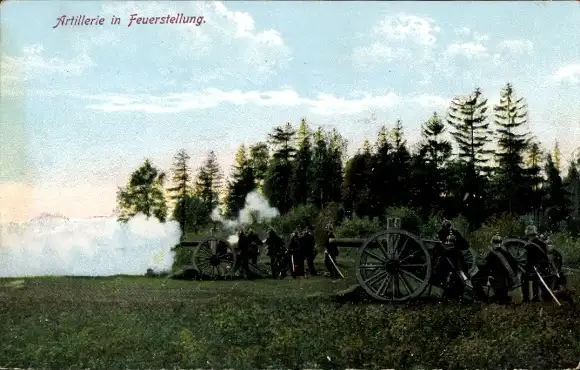Ak Artillerie in Feuerstellung, Soldaten feuern Geschütz ab