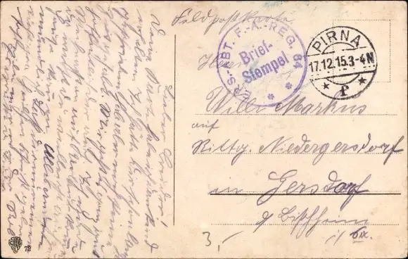 Zustand, siehe Scan, gelaufen, 1915 - ca 14 cm X 9 cm