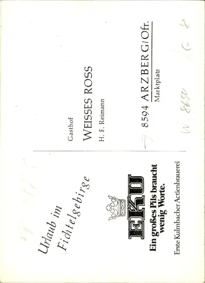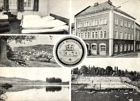 Ak Arzberg in Oberfranken, Erste Kulmbacher Actienbrauerei, Gasthof Weißes Ross, Freibad