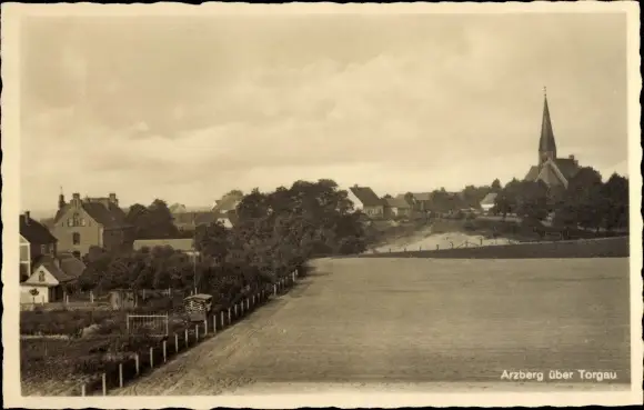 Ak Arzberg in Sachsen, Teilansicht des Ortes mit Kirche
