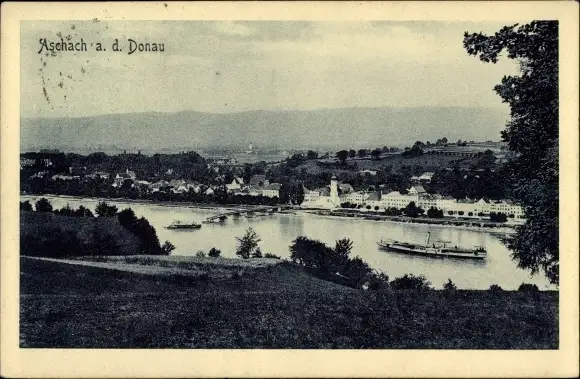 Ak Aschach an der Donau Oberösterreich, Totalansicht der Ortschaft, Dampfer
