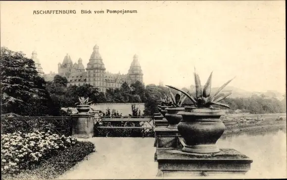 Ak Aschaffenburg in Unterfranken, Blick vom Pompejanum