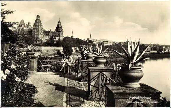 Ak Aschaffenburg in Unterfranken, Blick vom Pompejanum