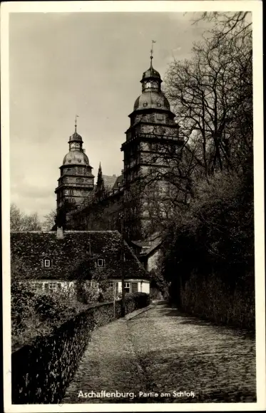 Ak Aschaffenburg in Unterfranken, Partie am Schloss