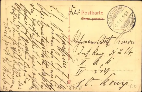 Zustand, siehe Scan, gelaufen, 1916 - ca 14 cm X 9 cm