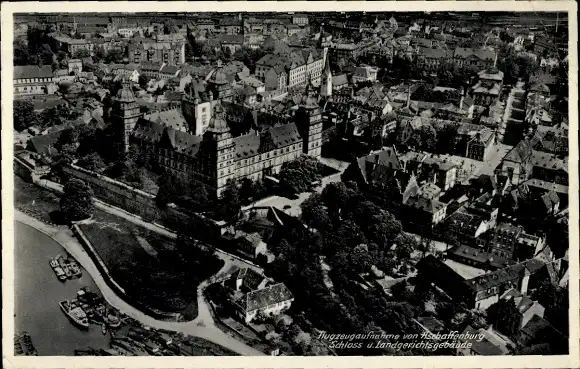 Ak Aschaffenburg in Unterfranken, Schloss, Landgerichtsgebäude, Luftbild