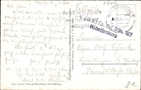 Zustand, siehe Scan, gelaufen, 1939 - ca 14 cm X 9 cm