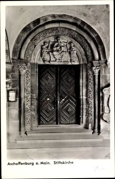Ak Aschaffenburg in Unterfranken, Stiftskirche, Portal
