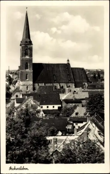 Ak Aschersleben im Salzlandkreis, Panorama mit Kirche