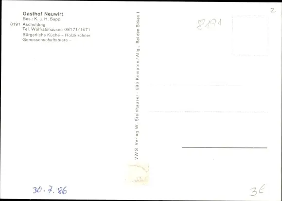 Ak Ascholding Dietramszell in Oberbayern, Gasthof Neuwirt