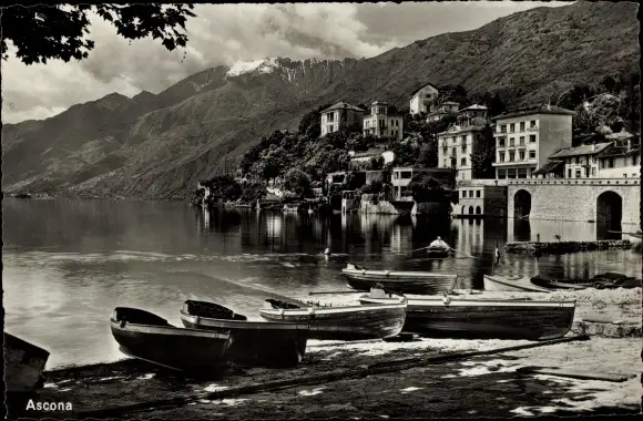 Ak Ascona Kanton Tessin, Panorama, Boote