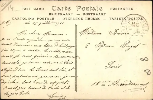 Zustand, siehe Scan, gelaufen, 1911 - ca 14 cm X 9 cm